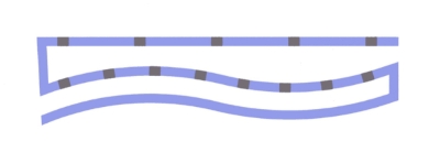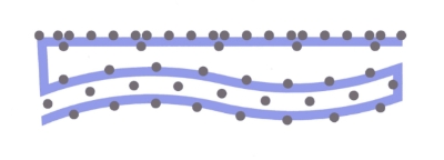 Une rivière qui serpente et délimite en douceur les domaines publics et les domaines privés Les terrasses des commerces sur la place sont des passerelles sur la rivière. Les entrées des maisons sont des passerelles sur la rivière. Les arbres bordent la rivière et gardent les passerelles. La rivière peut être une rivière d'eau ou bien plus simplement une rivière de fleurs, une rivière d'herbes hautes... elle marque toujours un passage.