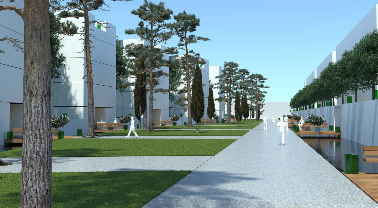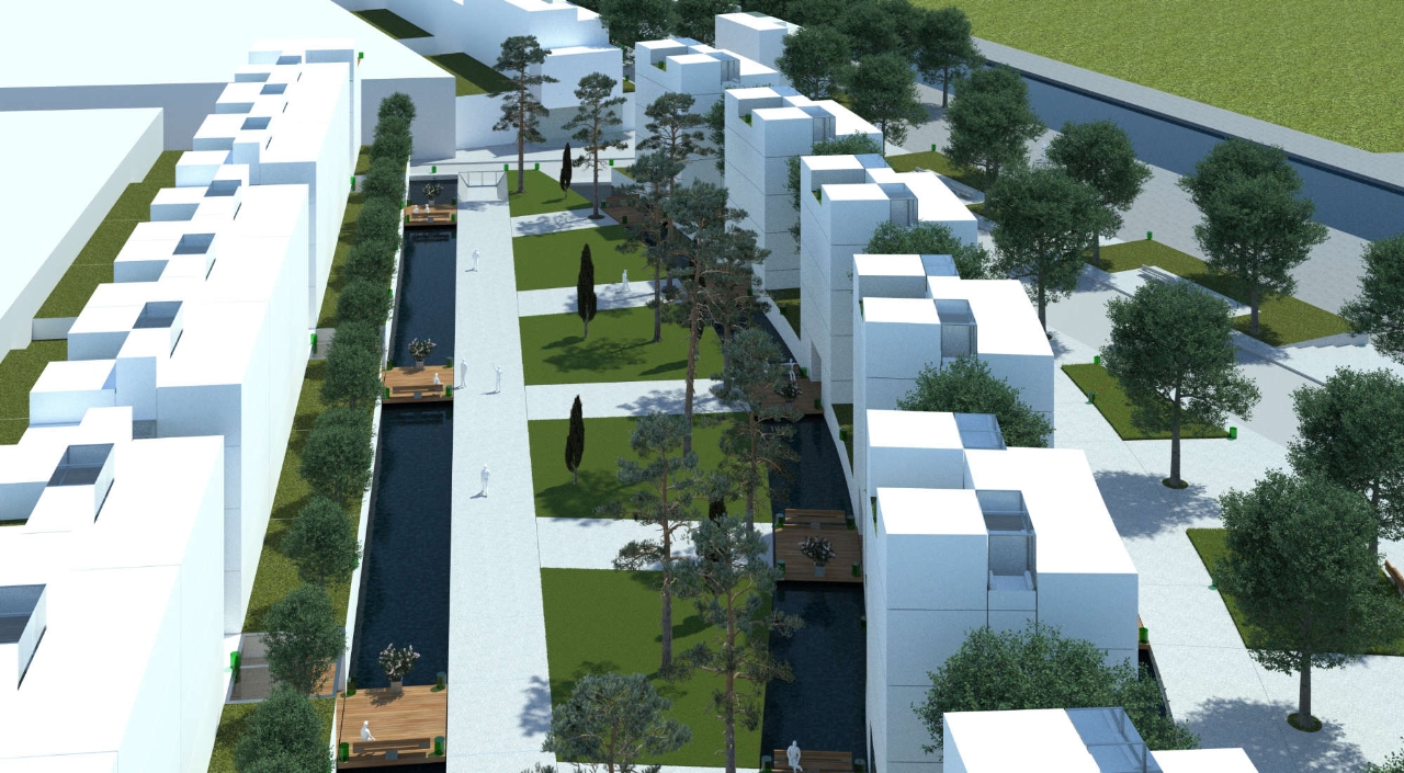 le parc le canal les quais la place les maisons en plot le jardin intérieur les maisons en bande |