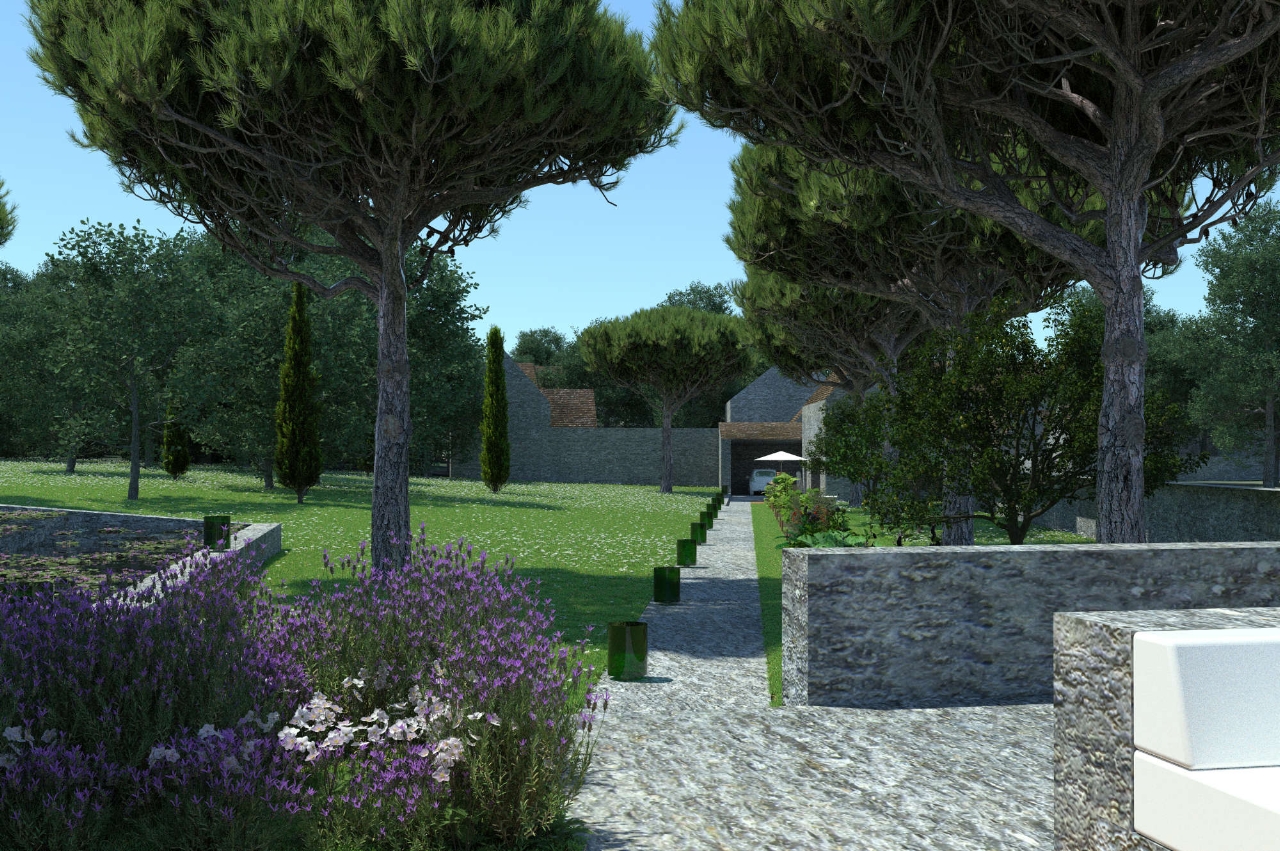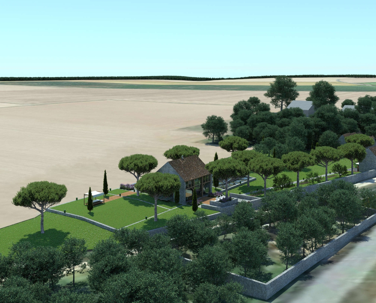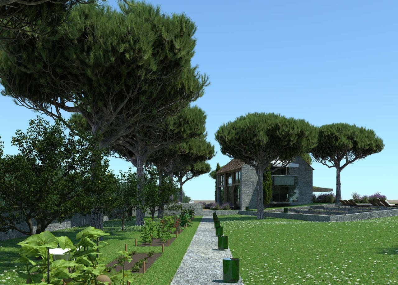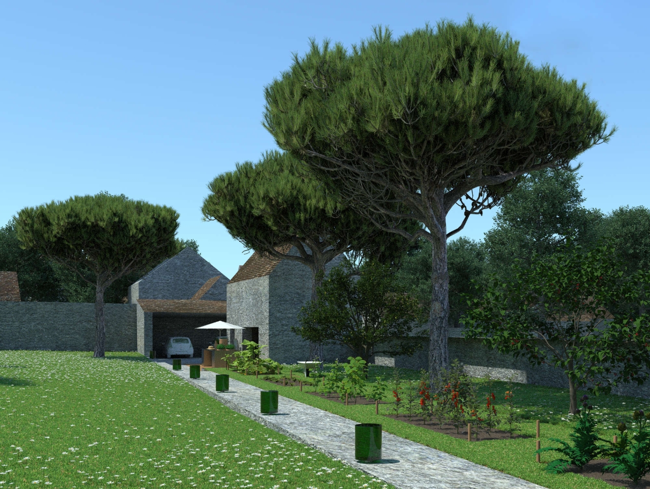 ombragent et veillent sur la maison Ici, les gardiens sont les arbres Précisément placés, ils verrouillent les axes majeurs de la maison et du