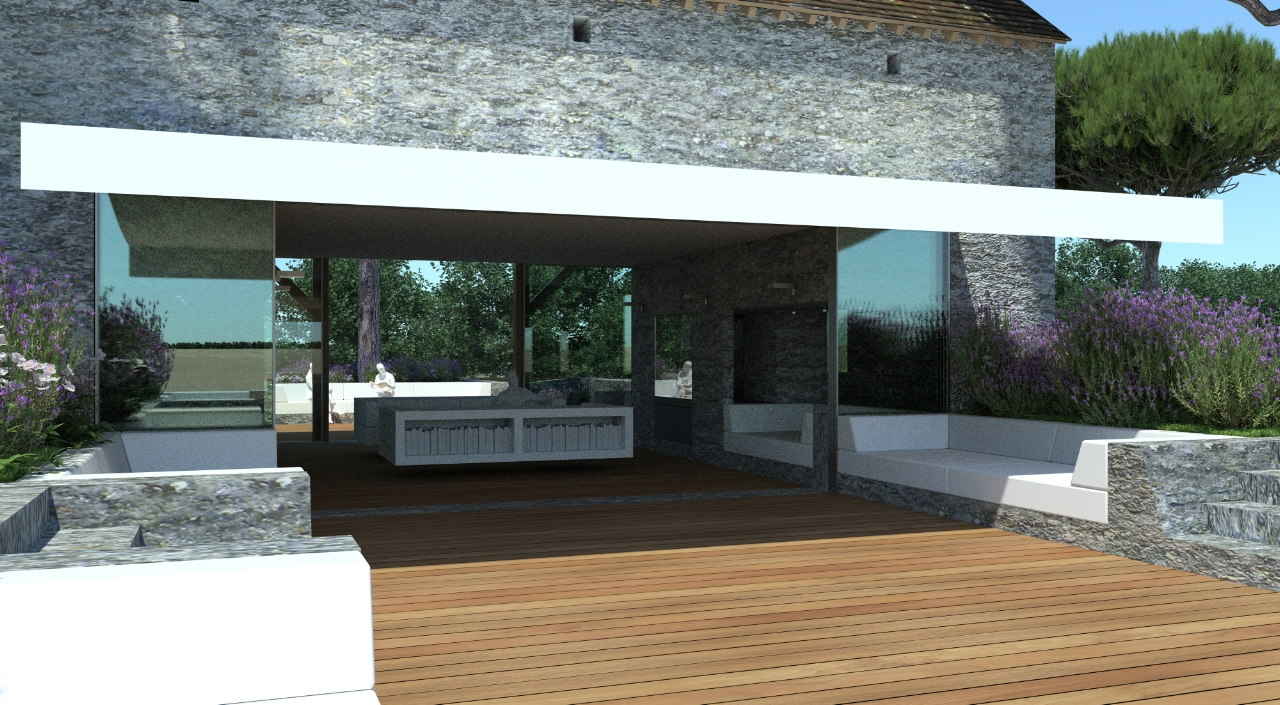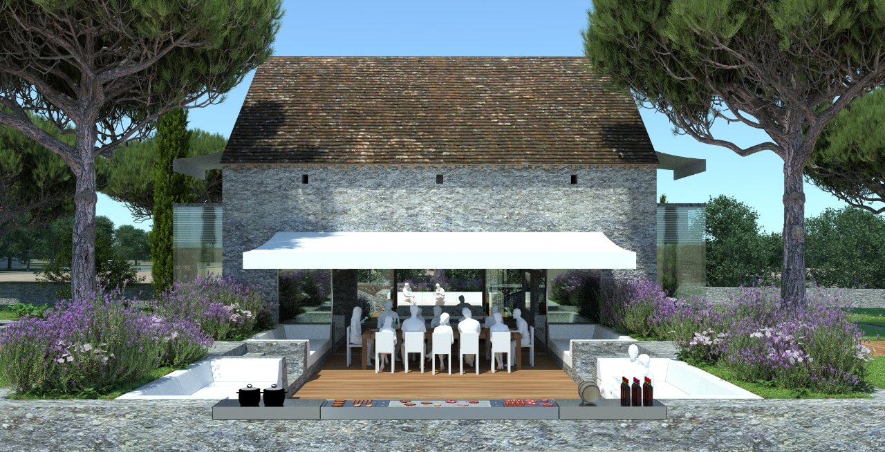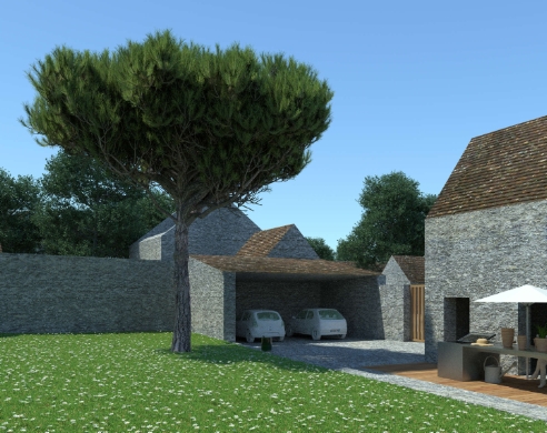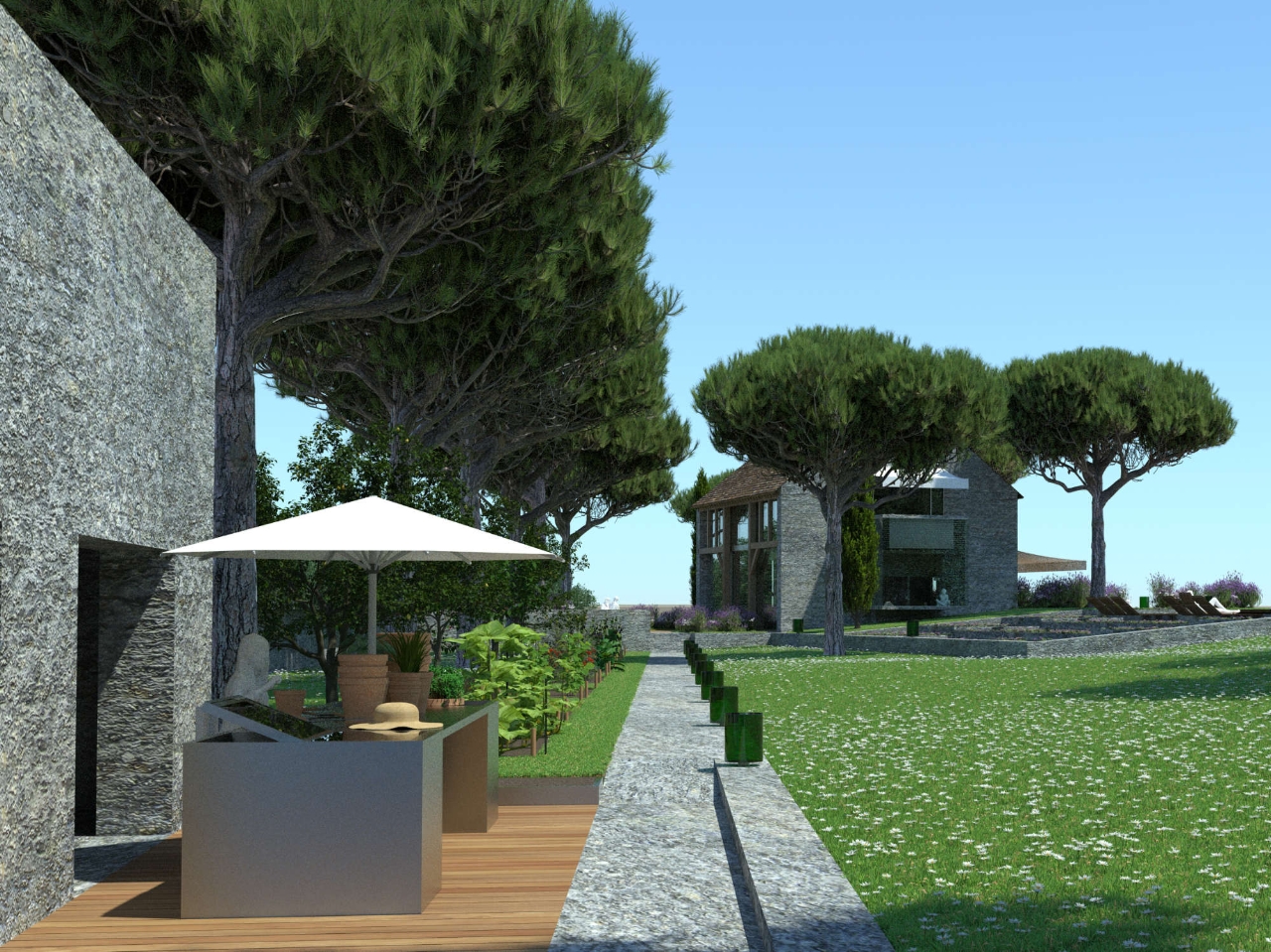 massifs de fleurs protège la maison des regards indiscrets Côté village, les deux bâtiments existant sont rénovés et servent de