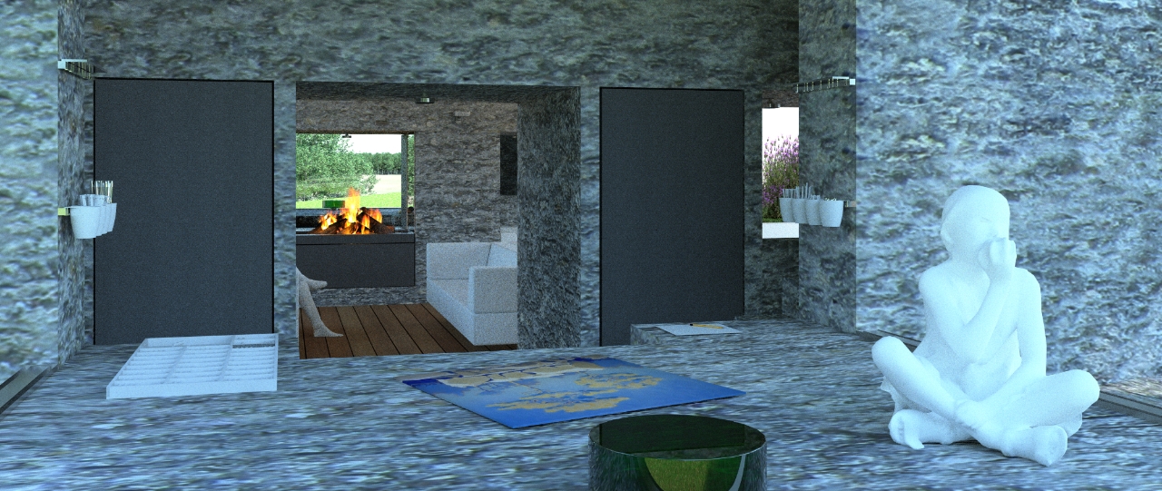 Pavillon de repos entre bassin de nage et bassin de barbotage |