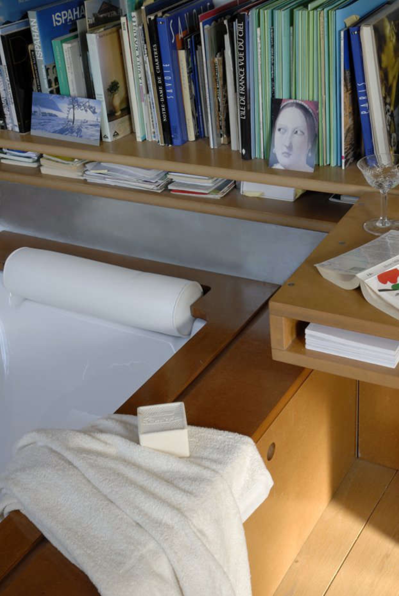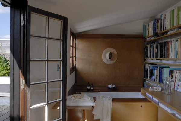 Côté bain, côté sieste : une baignoire sous un lit Quel plaisir de prendre un bain dans une grande baignoire tout en contemplant le ciel! Une fois le bain terminé, le lit se referme pour accueillir une bonne sieste réparatrice… |