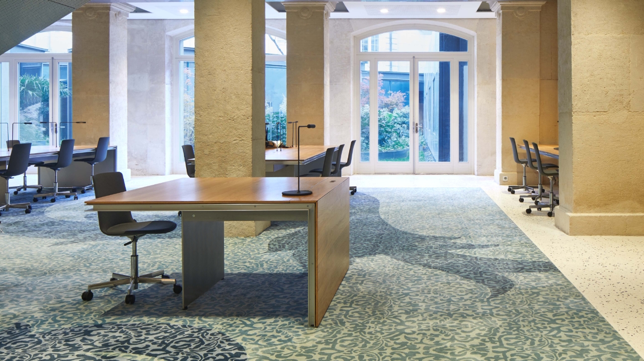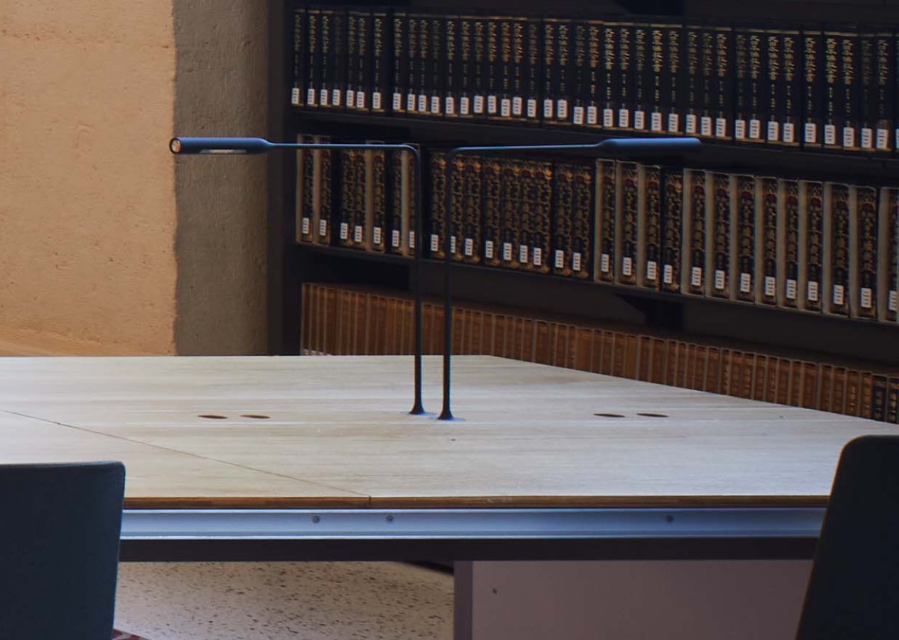 Une ligne de tables de lecture conçue pour l'Institut des Civilisations du Collège de France Un ensemble