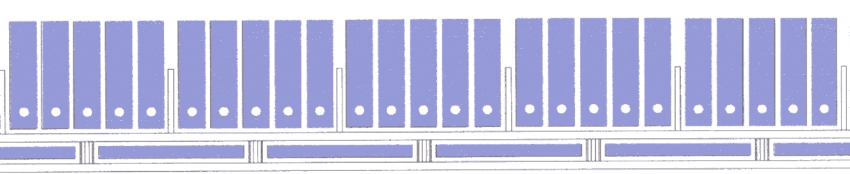 Chaque alvéole est déjà l'onglet d'un classeur, la bibliothèque est ainsi un classeur à grande échelle. |