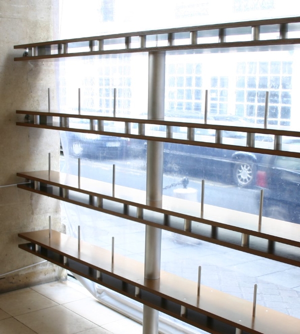Des étagères de grande portée Creuses et très épaisses, les étagères sont très rigides et autorisent de grandes portées. Elles peuvent être accrochées au mur ou simplement bloquées par des vérins. |