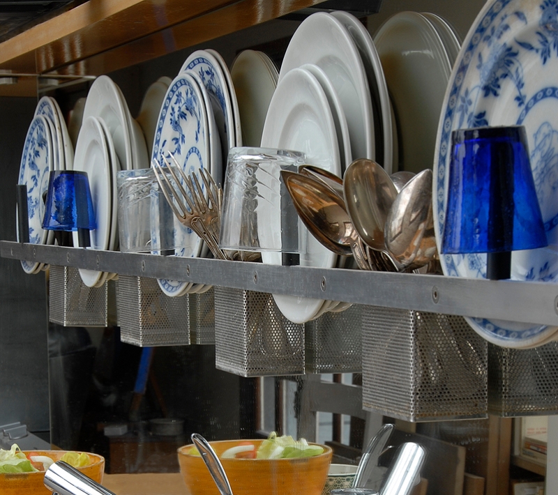 Pratique Fini la corvée de l'essuyage : la vaisselle sèche toute seule et elle en est fière! Les assiettes reposent sur 2 confortables tubes de néoprène Un tube de pvc les empêche de basculer Il sert en même temps de porte-verres Des paniers ajourés permettent de faire sécher les couverts.